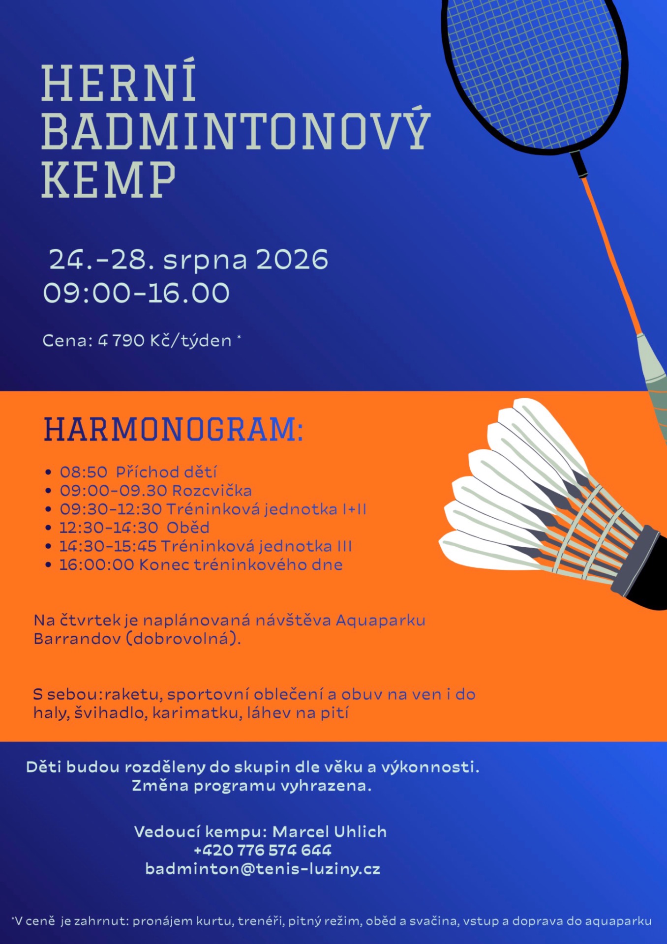 Zájemci se mohou hlásit na info@tenis-luziny.cz, badminton@tenis-luziny.cz ,vyplnit přihlášku osobně na recepci areálu nebo vyplnit online přihlášku ZDE.