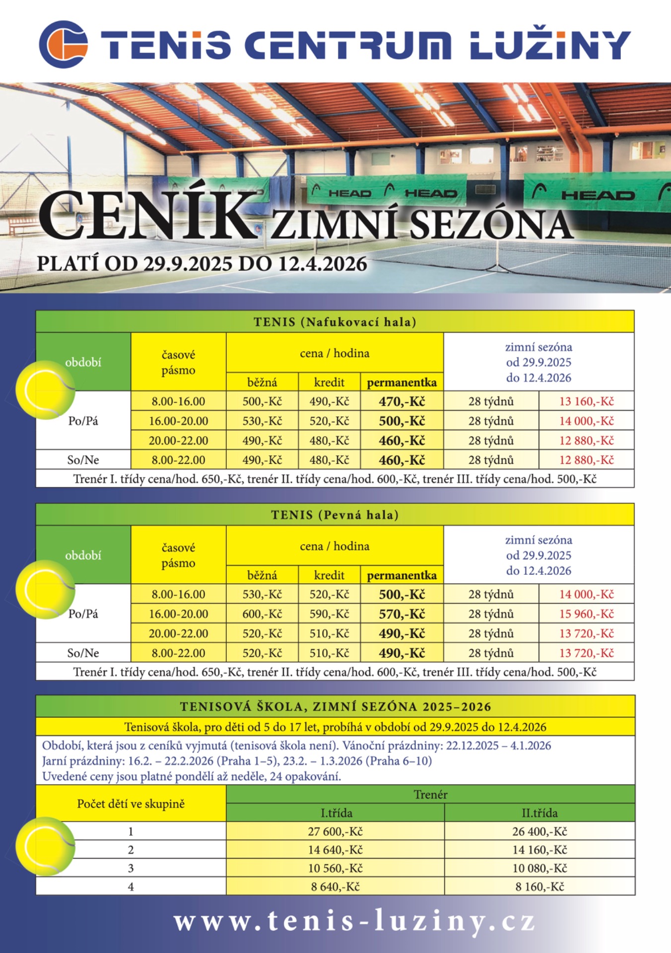 Price List – Winter 2025-2026